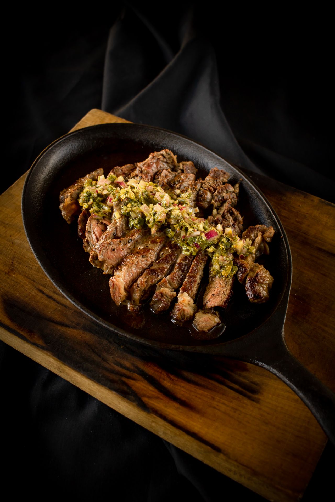Centro de lomo vetado, salsa chimichurri