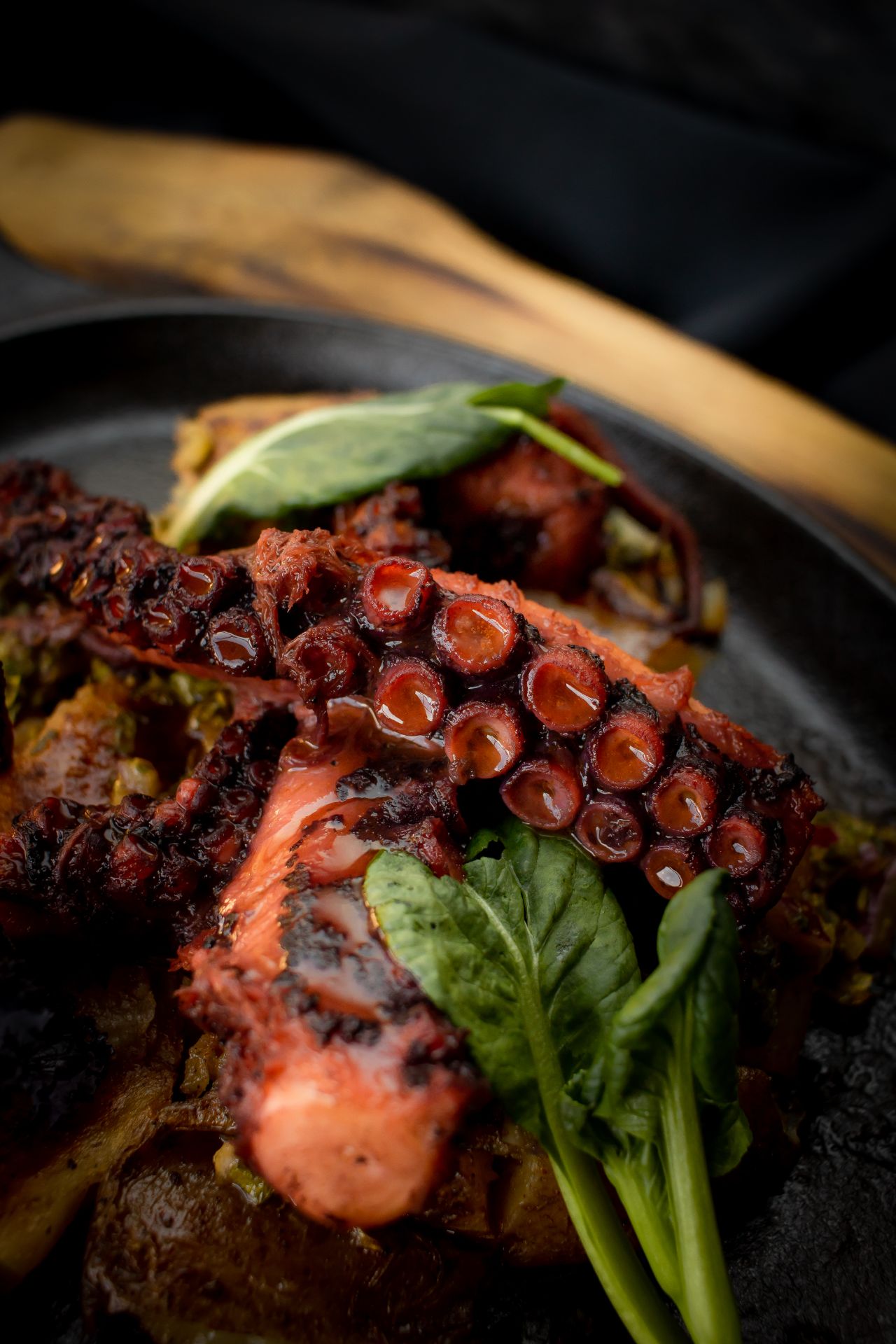 Barriga de cerdo, glaze y chucrut morado