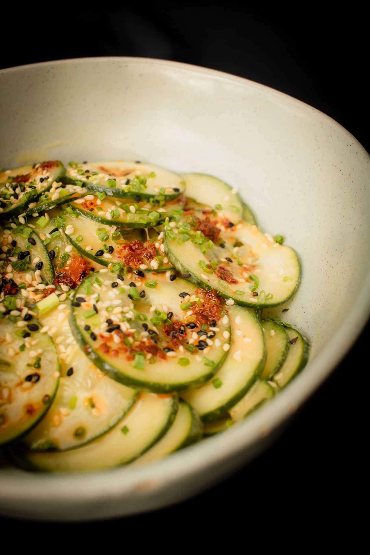 Láminas de pepino, vinagreta de jengibre estilo japonés